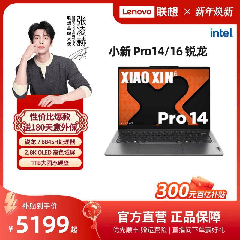 AI超能本 联想小新Pro14 Pro14锐龙14英寸游戏轻薄笔记本电脑大学生学习办公电脑联想电脑官方 百补