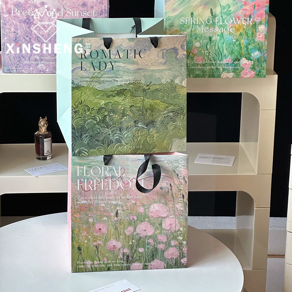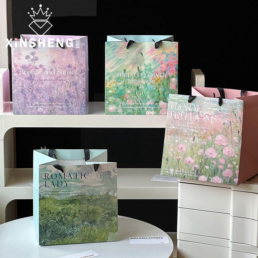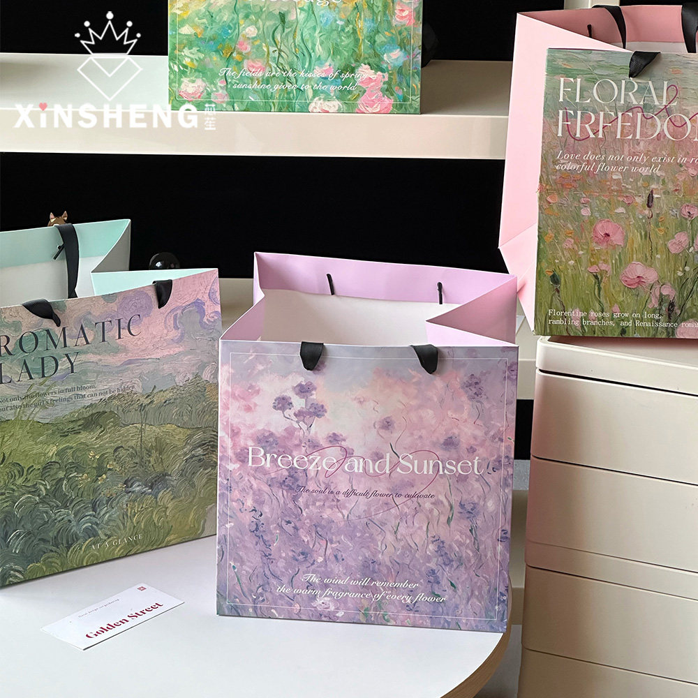 芯苼 原创油画系列手提袋鲜花花束插花盒手工diy花艺礼品袋油画风