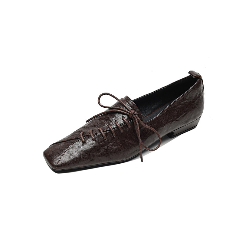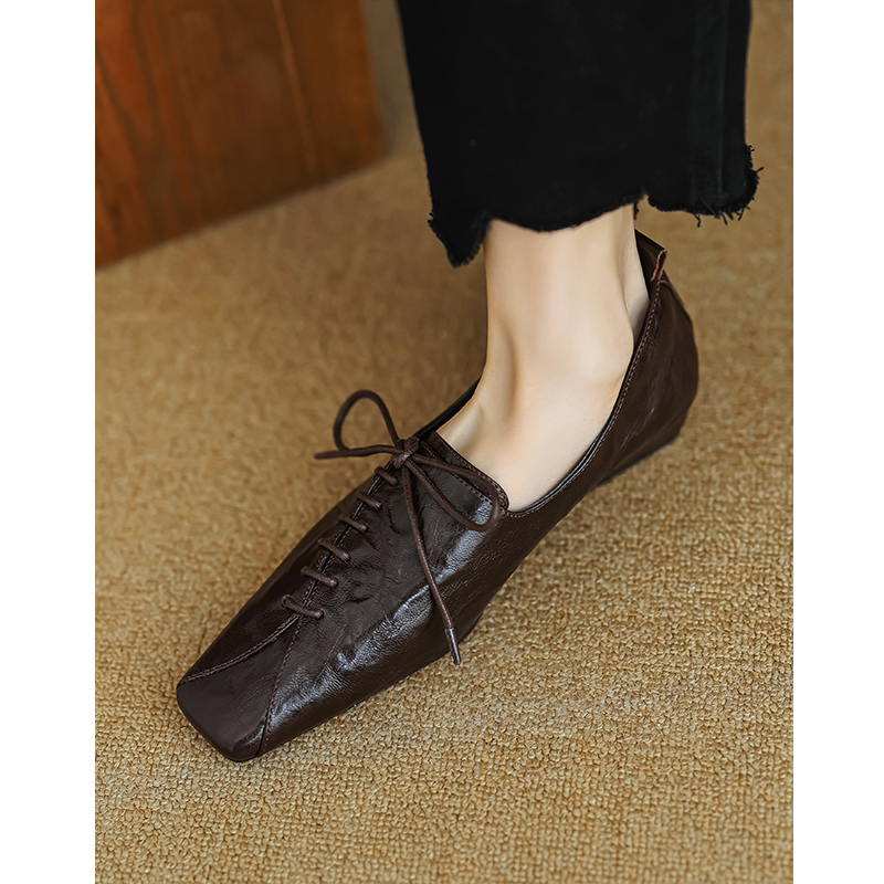 女2025新款 豆豆鞋 红色平底鞋 浅口婚鞋 秋冬芭蕾法式 达芙妮羊皮单鞋