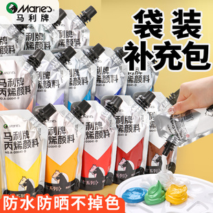 马利丙烯颜料袋装 白色金色防水防晒不掉色涂鸦儿童彩墙绘Diy流体画石膏娃娃涂色丙稀牌 美术生专用补充包套装
