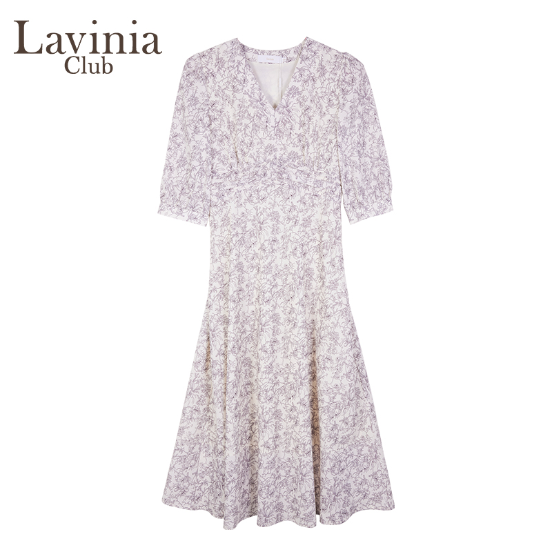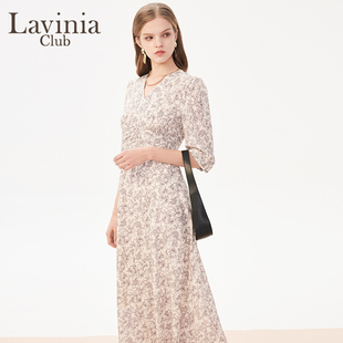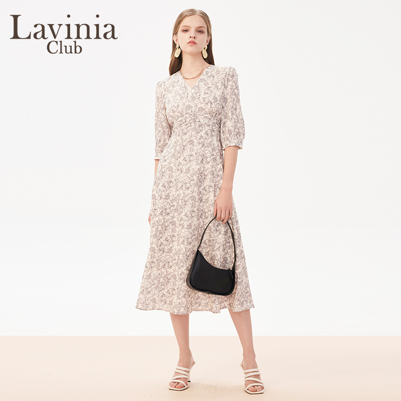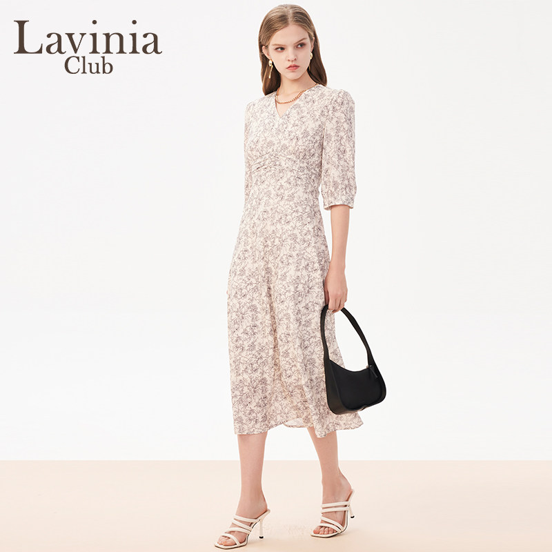 R41L106S 优雅抽褶显瘦茶歇赫本风连衣裙春秋新款 Lavinia 法式