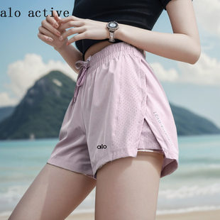 夏 女速干防走光假两件运动跑步透气训练健身裤 ALO ACTIVE瑜伽短裤