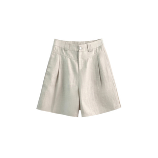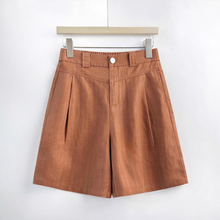 胖妹妹mm高腰宽松显瘦阔腿五分中裤 薄款 子 女夏季 亚麻天丝休闲短裤