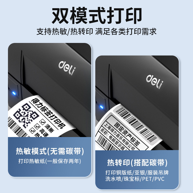 得力GE500W碳带打印机铜板亚银纸水洗唛热敏纸热转印双模打印888T