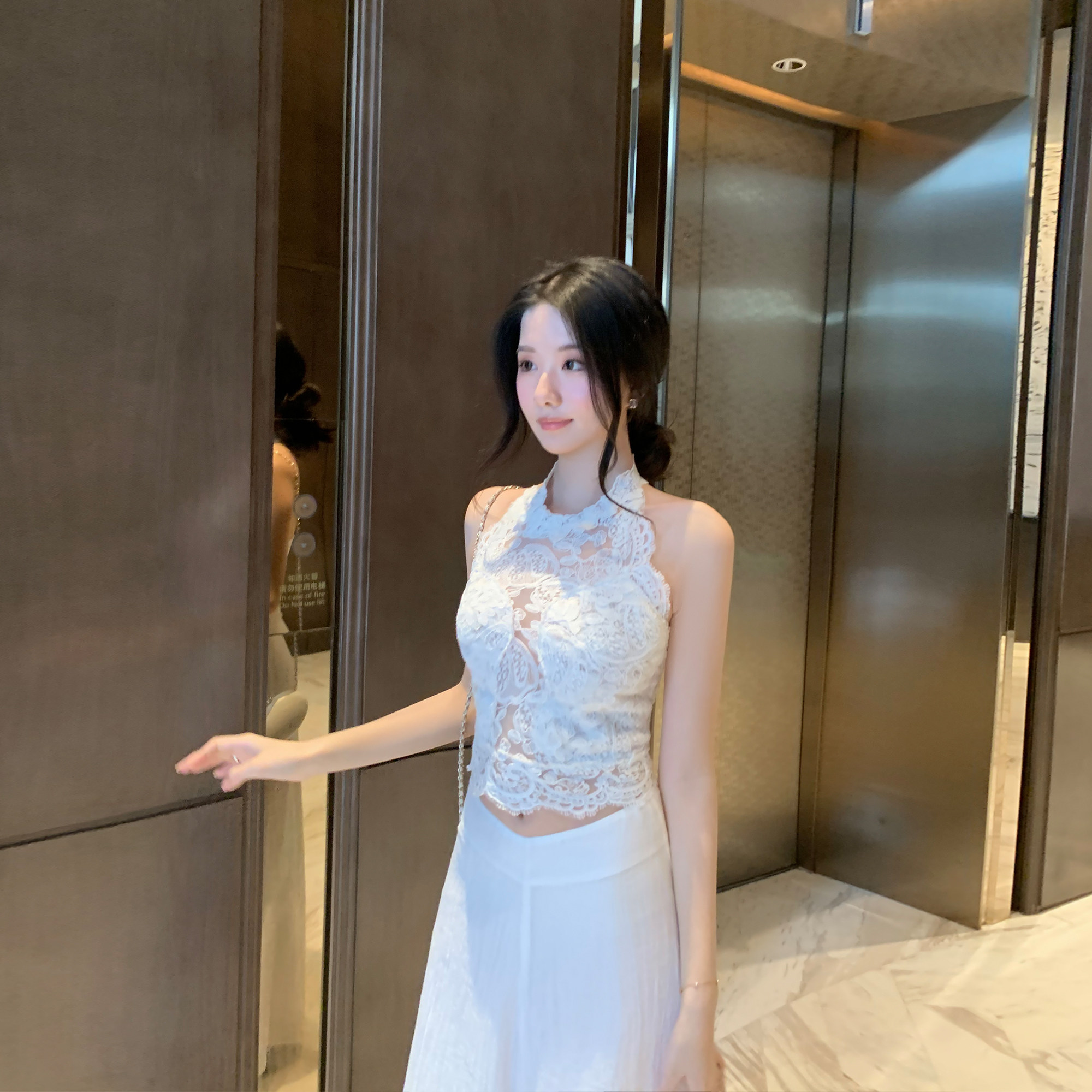 Middletone 高级感重工蕾丝挂脖吊带背心露背心机上衣 香肩lace