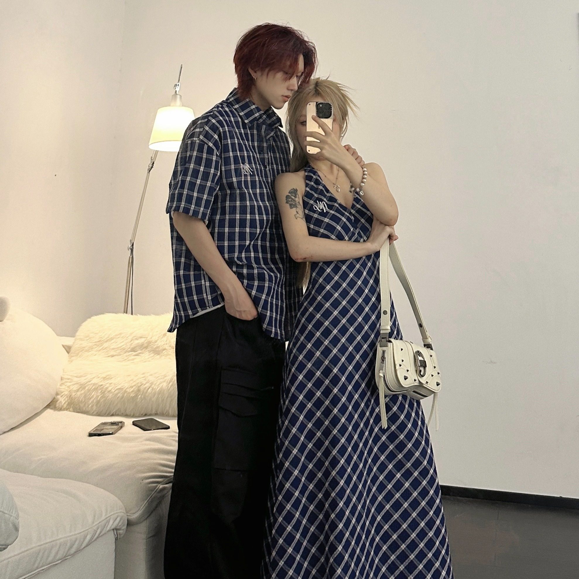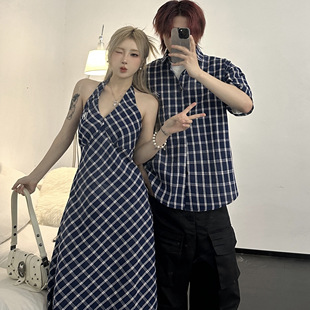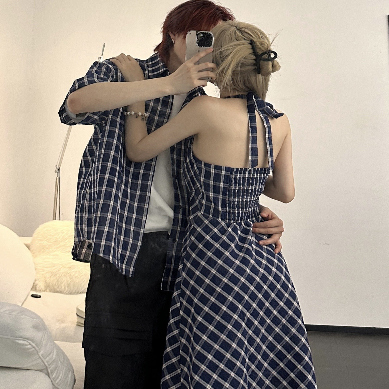 夏季 男女连衣裙法式 2025韩版 衬衫 一裙一衣潮 短袖 小众设计感情侣装