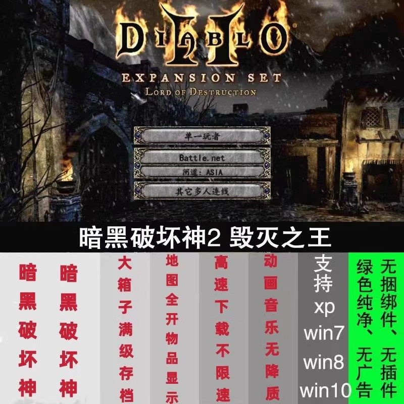 暗黑破坏神2高清毁灭之王1.13c 1.14d大背包箱子满级存档单机游戏