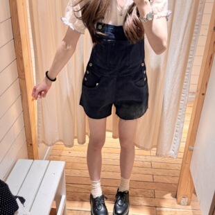 宽松直筒连体裤 美式 新款 女夏季 辣妹复古蓝色口袋毛边牛仔背带短裤