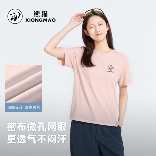 透气圆领休闲通勤运动户外上衣服 新款 熊猫短袖 速干t恤女2026夏季