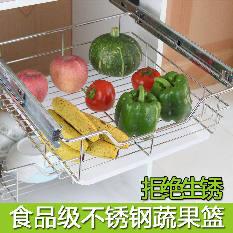 阻尼不锈钢拉篮304厨房橱柜蔬果篮单层碗碟拉篮xyt抽屉300 350