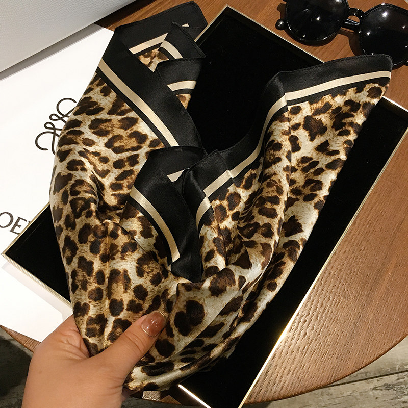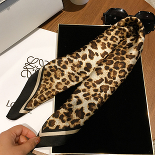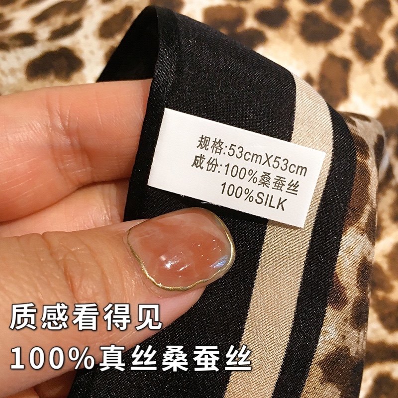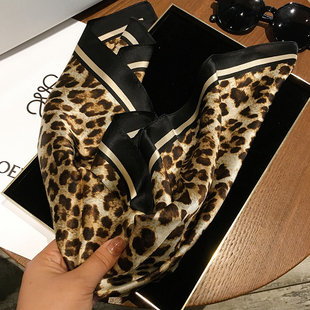 复古豹纹春秋真丝小方巾女洋气丝巾百搭装 饰领巾桑蚕丝小围巾薄款