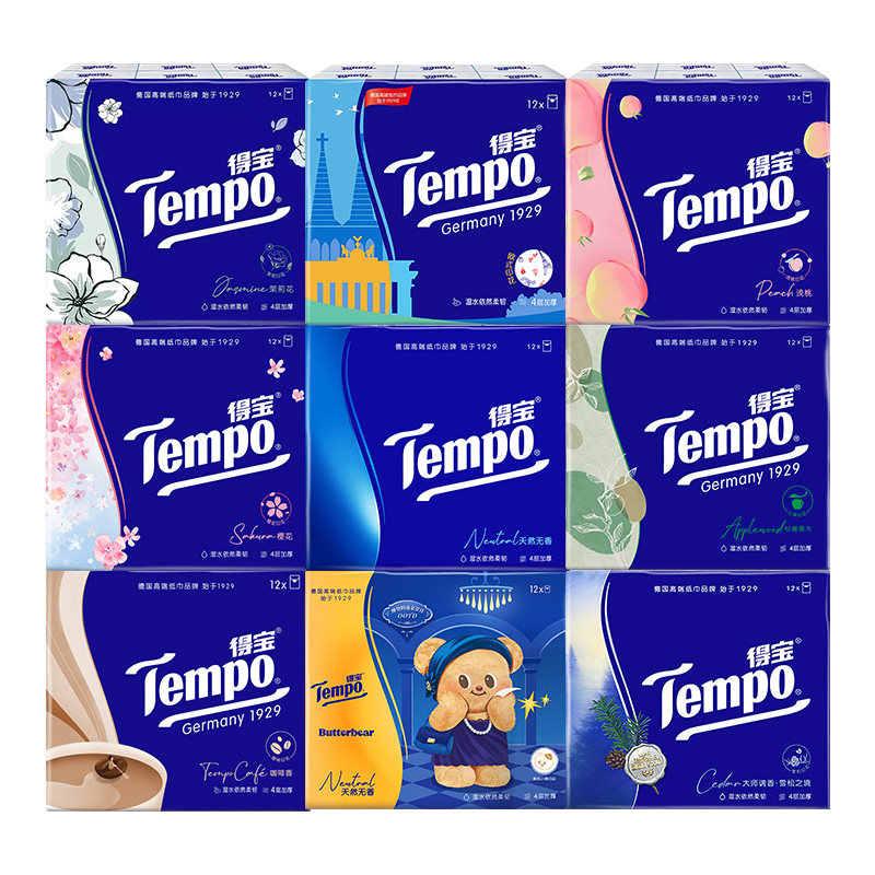 会员精选Tempo得宝经典 无香梦幻樱语手帕纸36包&Pingu手帕纸60包