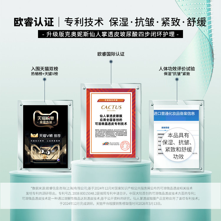 仙人掌眼膜淡化泪沟细纹暗沉舒缓抗皱保湿 紧致克奥妮斯微晶眼膜贴