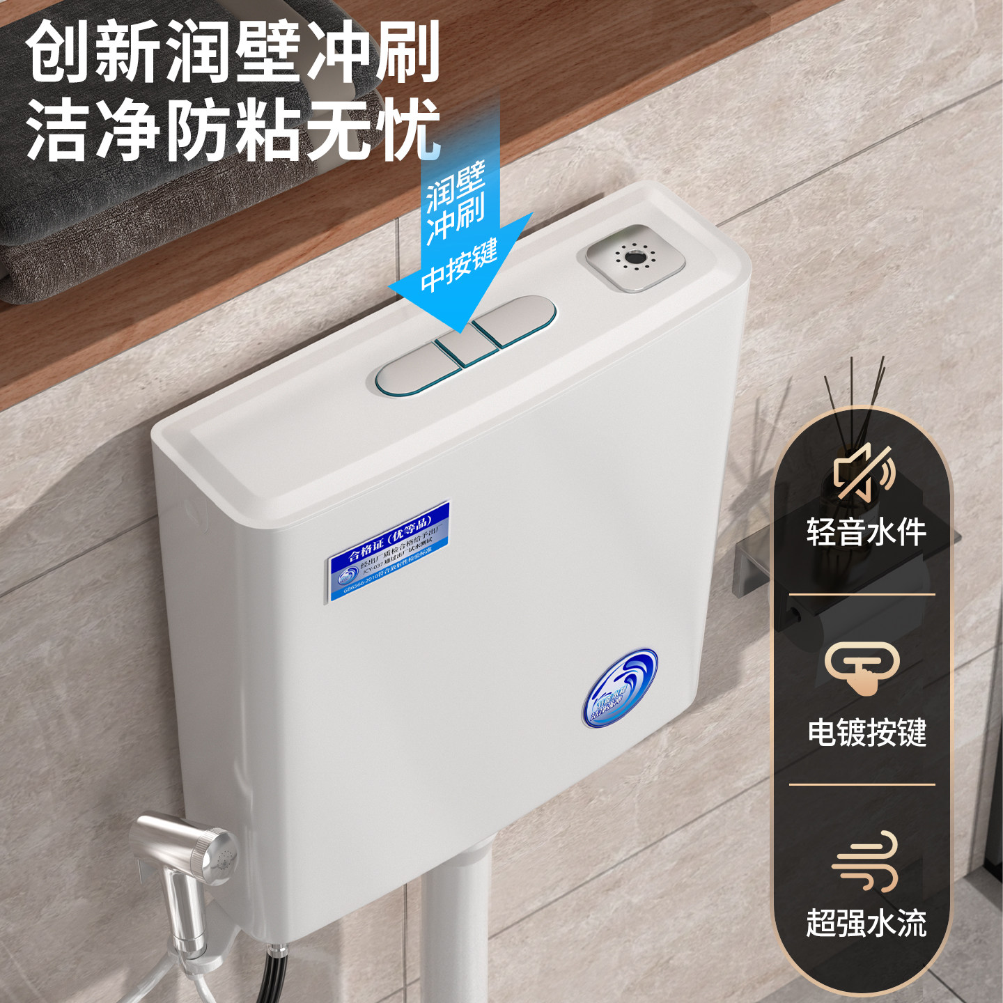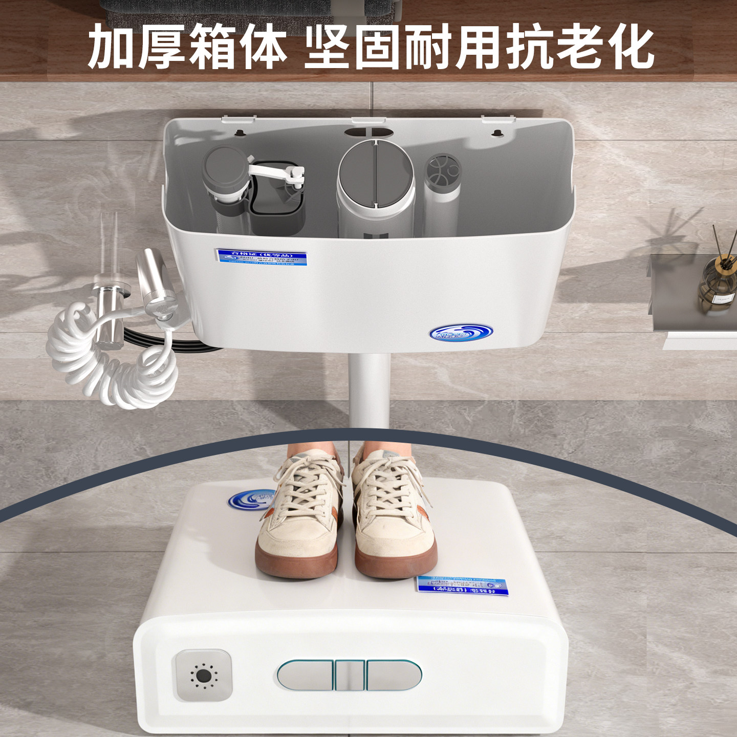 马桶水箱家用卫生间冲水箱蹲便器蹲坑加厚大冲力节能厕所冲水箱