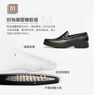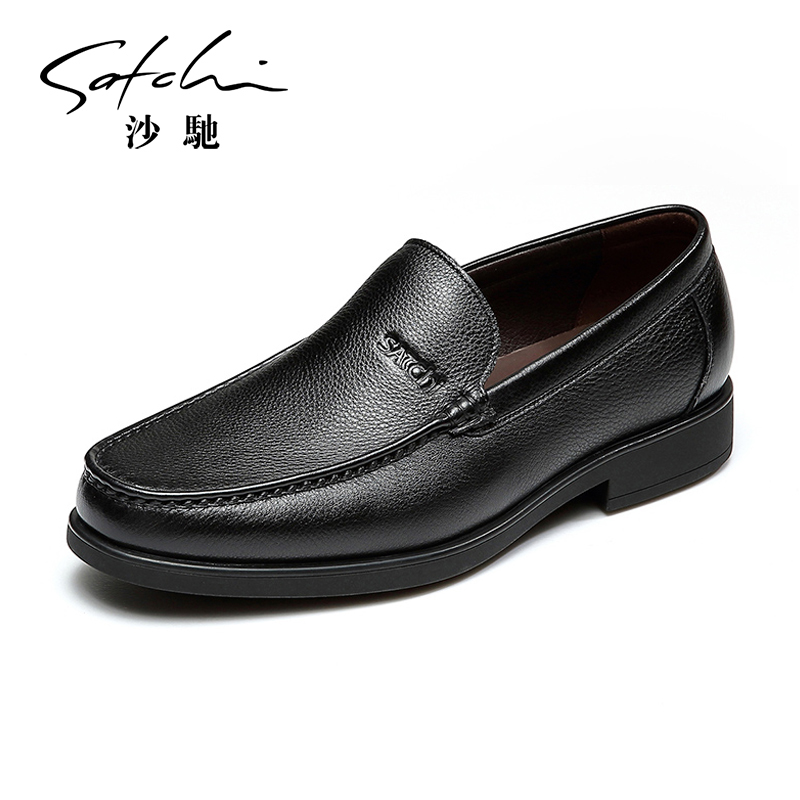 沙驰男鞋 青年商务休闲一脚蹬头层牛皮 英伦男真皮摔纹黑软底软皮鞋