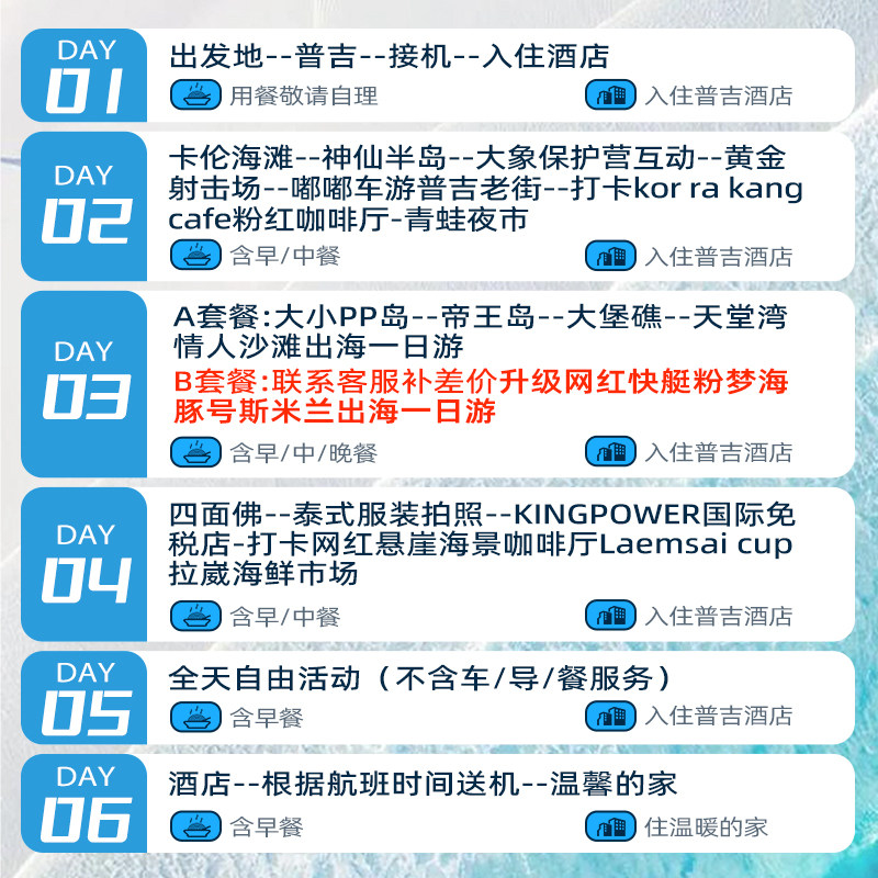 可选私家小团泰国普吉旅游含机票斯米兰6天跟团游 全程住五钻