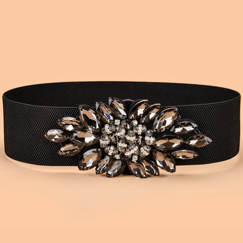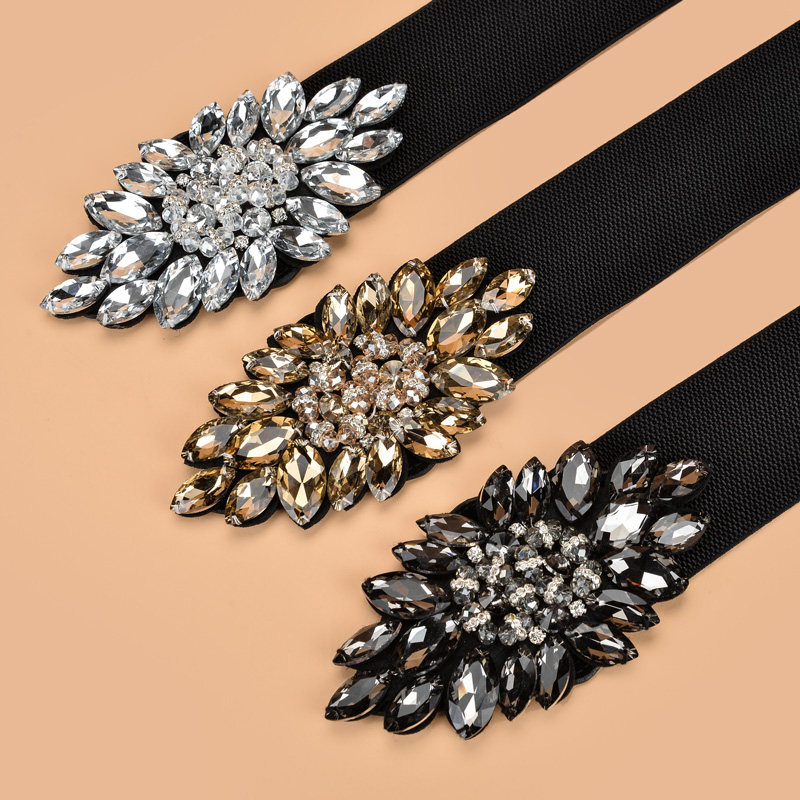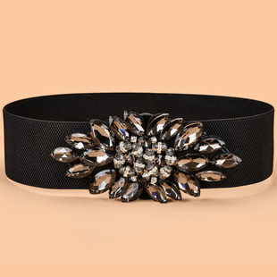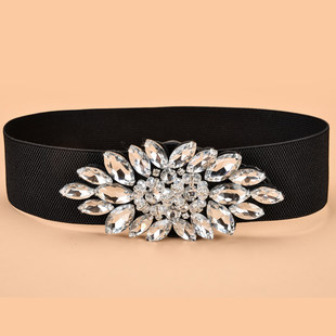 饰连衣裙羽绒服配带 水钻女士腰封弹力松紧宽腰带百搭装 新品 时尚
