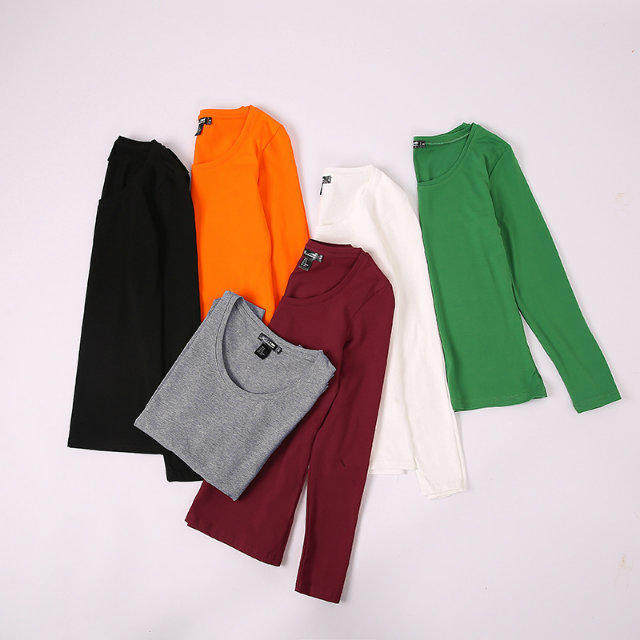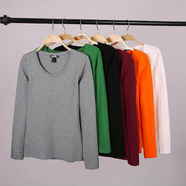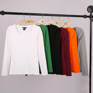 纯色简约打底衫 t恤女装 修身 体恤大码 百搭上衣 春季 韩版 V领白色长袖