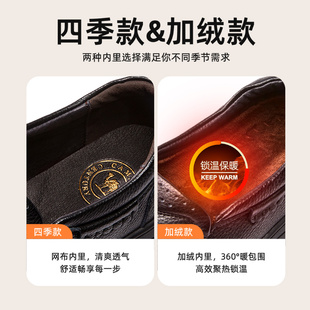 中年爸爸鞋 骆驼男鞋 商务加绒保暖棉鞋 真皮软底一脚蹬休闲皮鞋 冬季