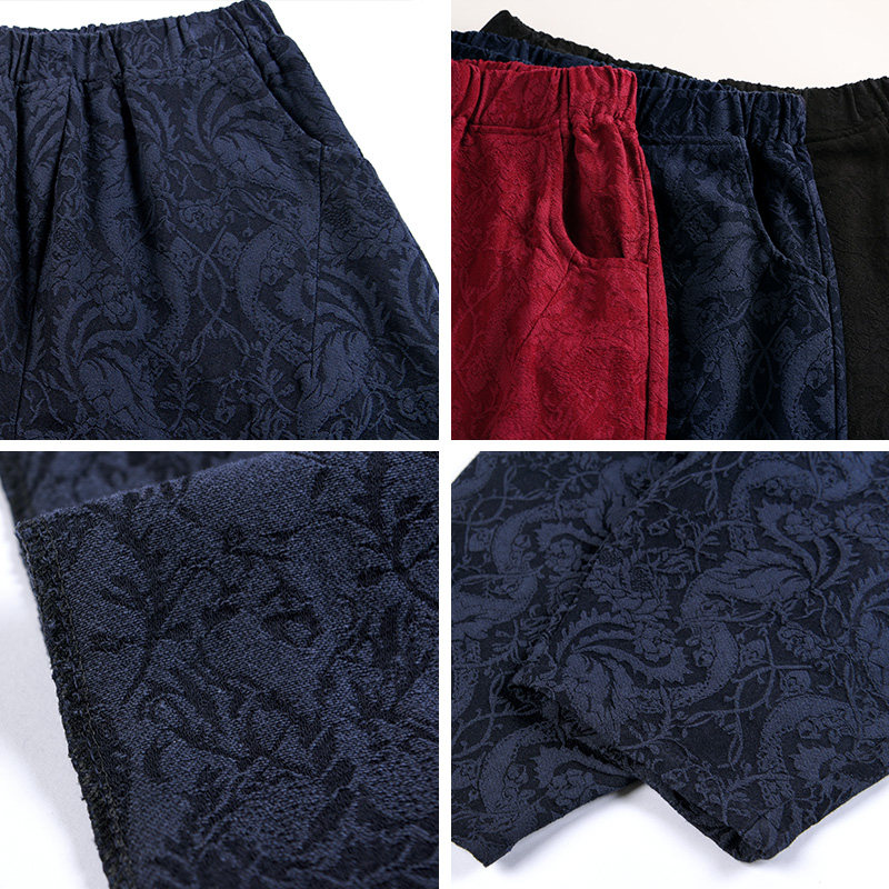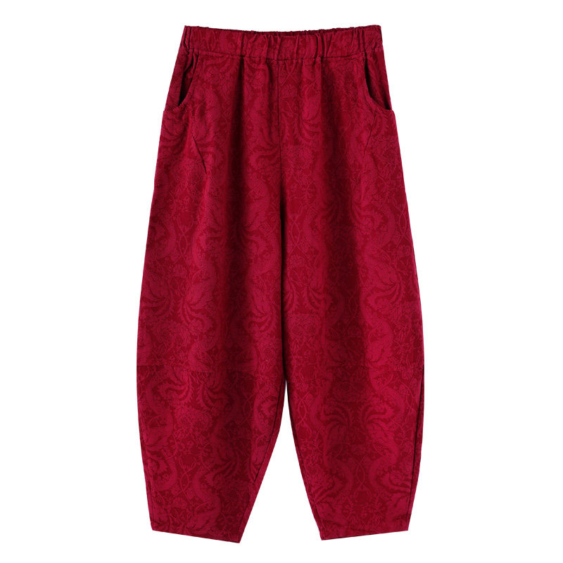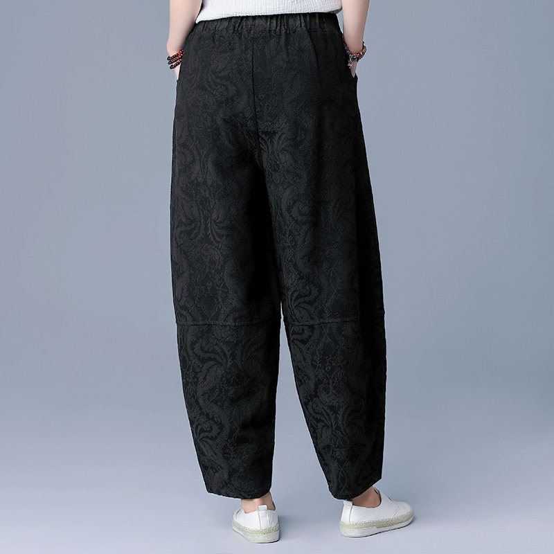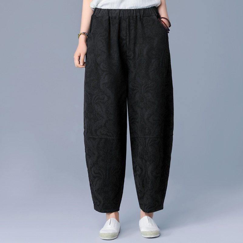 女秋冬加绒宽松休闲九分萝卜裤 布琳达2025春秋新款 棉麻提花灯笼裤