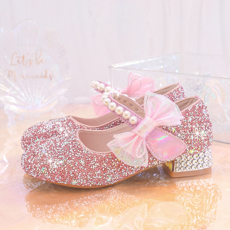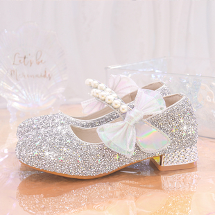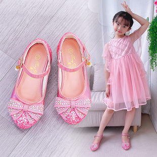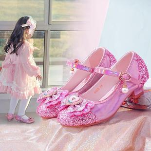 高跟皮鞋 小中童水晶鞋 爱莎新款 舞蹈演出童鞋 亮片粉公主鞋 女童单鞋