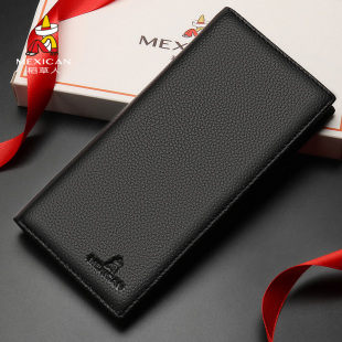 多卡位牛皮钱夹送老公男友礼物 真皮夹礼盒新款 稻草人钱包男士 长款