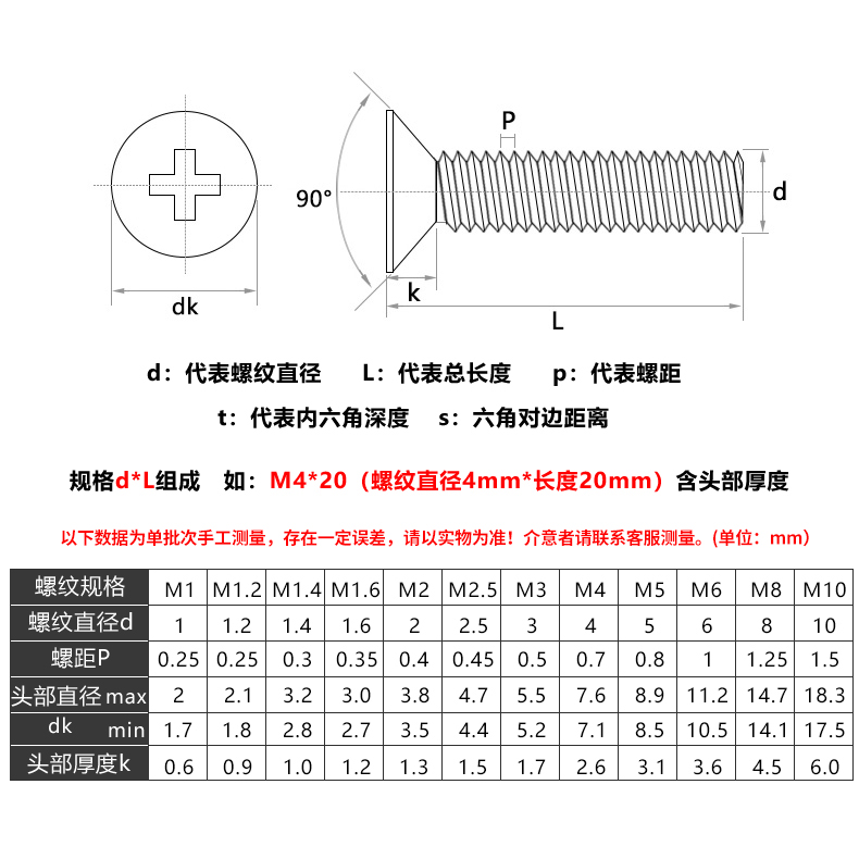 加长316不锈钢沉头十字机牙螺丝钉M2M2.5M3M4M5M6M8平头螺钉GB819