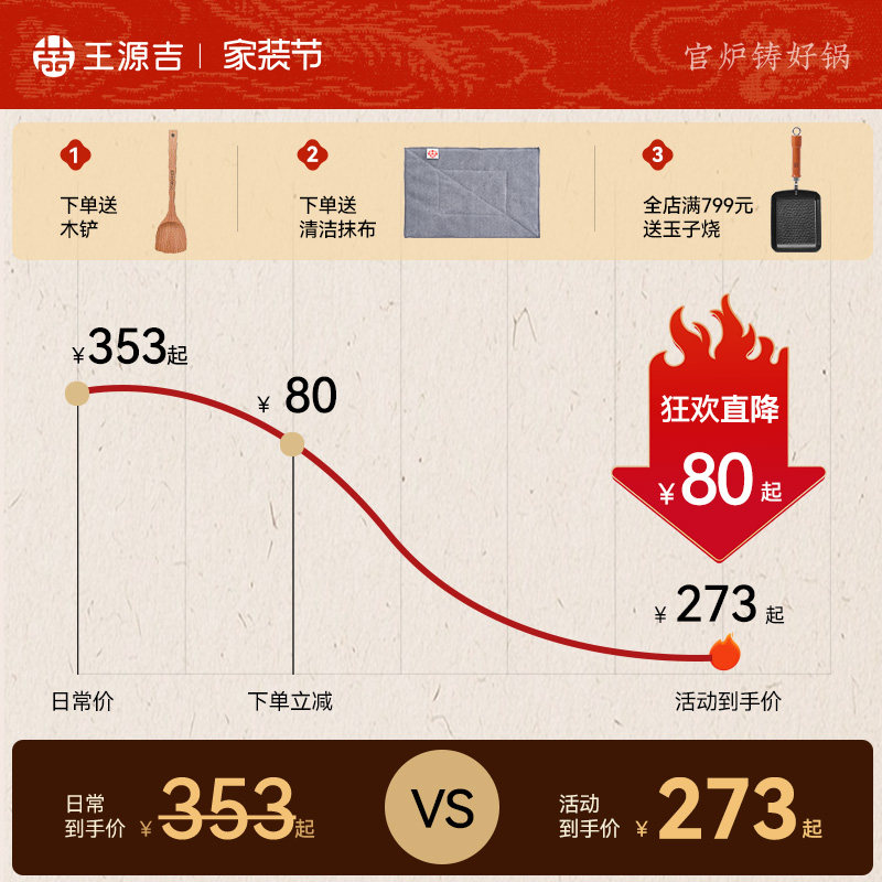 王源吉铁锅无涂层炒锅家用精铸铁燃气煤气灶适用老式 不粘炒菜锅