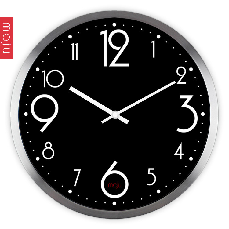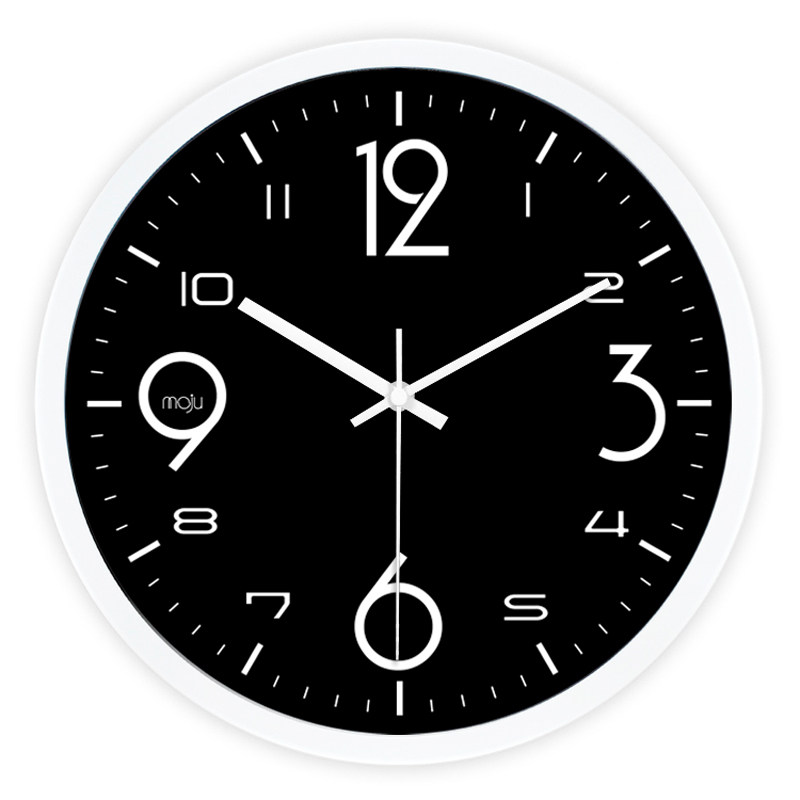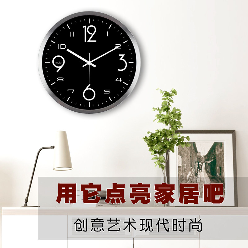 客厅挂钟创意现代时尚 数字静音时钟石英钟墙钟挂表 黑色简约个性