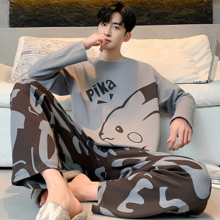 全棉初中学生家居服套装 纯棉卡通青少年秋天薄款 长袖 睡衣男春秋季