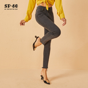 弹力高腰显瘦sp68魔术裤 韩国正品 烟灰色牛仔裤 灰色 68修身