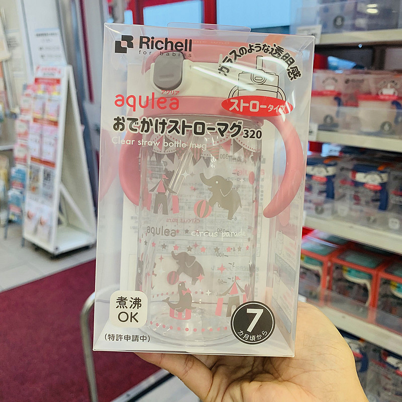 日本本土原装 限量 Richell利其尔吸管水杯宝宝手柄学饮训练杯新款
