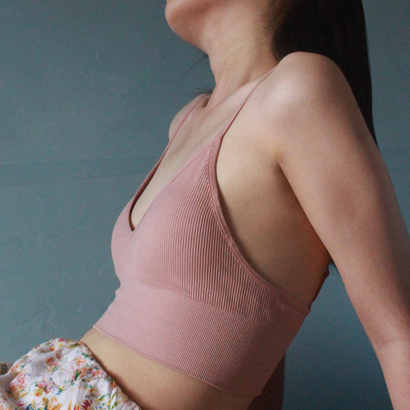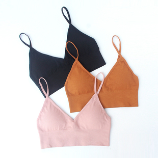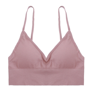 美背三角杯文胸 薄款 法式 螺纹无钢圈内衣女舒适bralette背心式