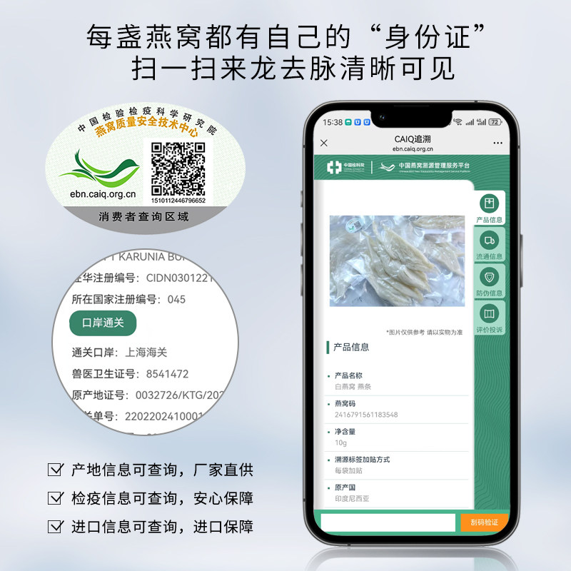 大燕条印尼进口CAIQ溯源燕窝官方旗舰店正品 马来西亚燕条滋补孕妇