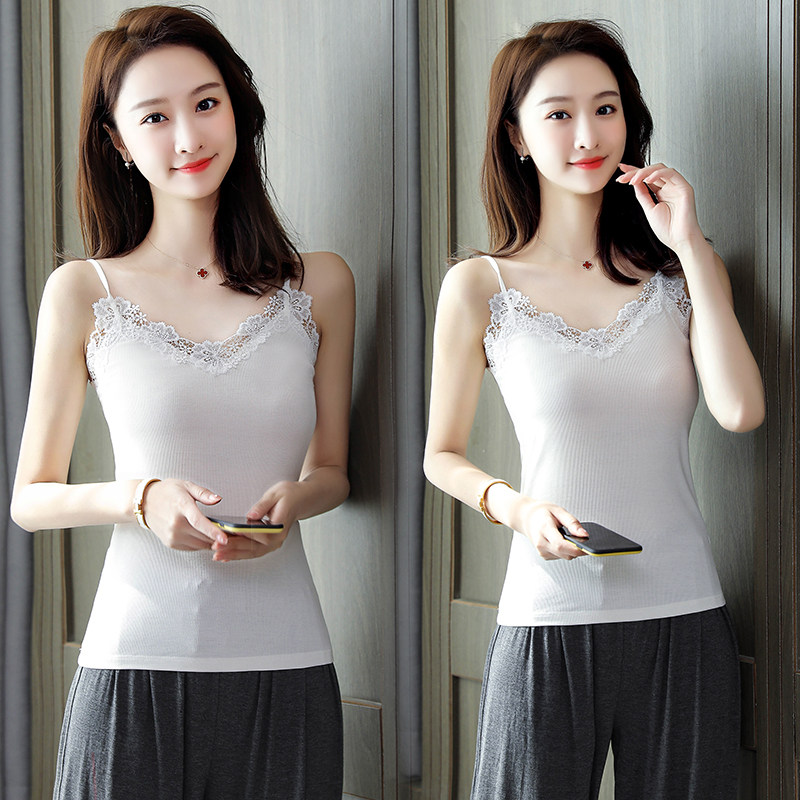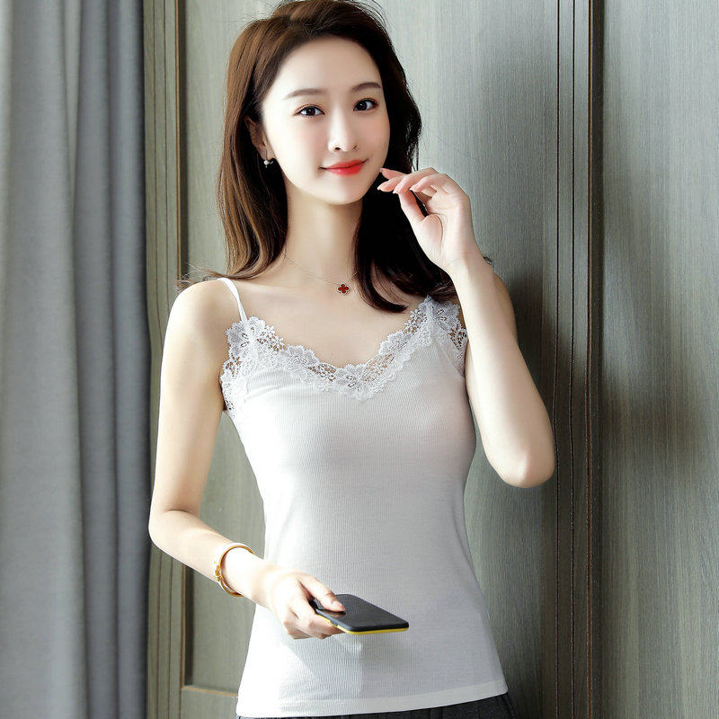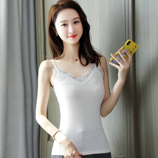 秋冬磨毛蕾丝保暖吊带背心女带胸垫修身 外穿内搭打底上衣 2025新款