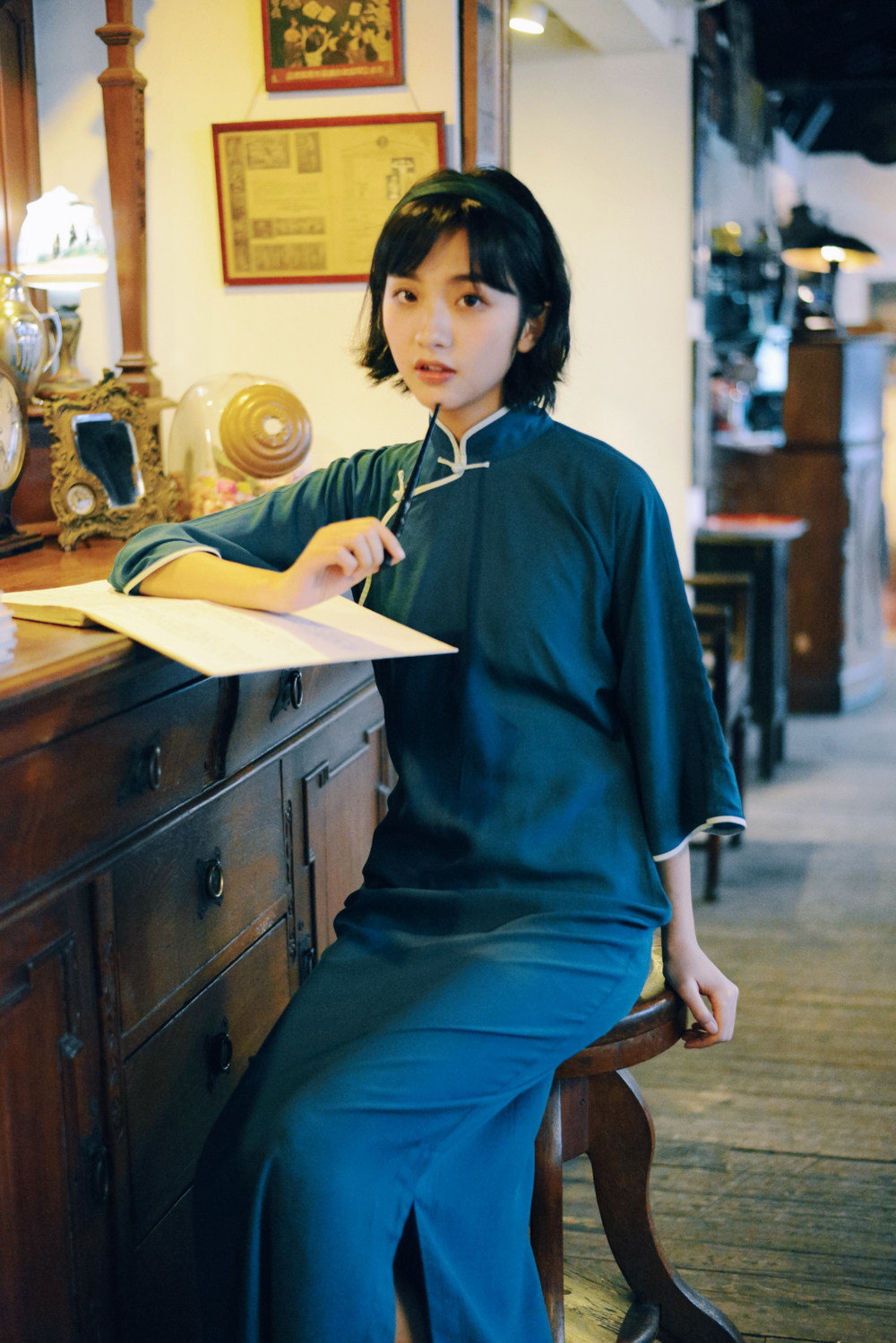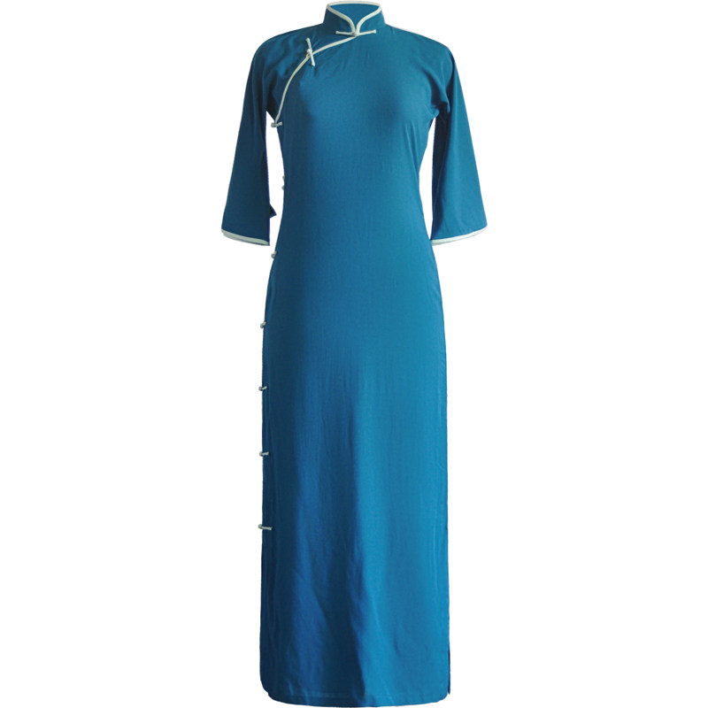长袖 7527#国风盘扣新中式 旗袍连衣裙 江南春不晚