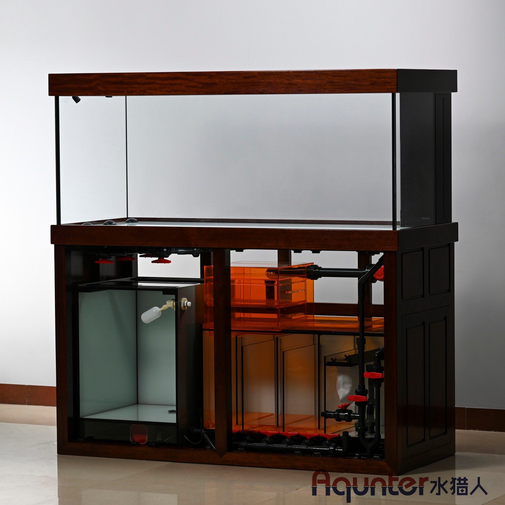 水猎人G5.3s精养旗舰版 美国PPG超白实木榫卯柜超白底滤缸鱼缸定制