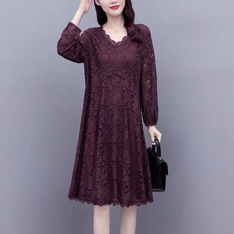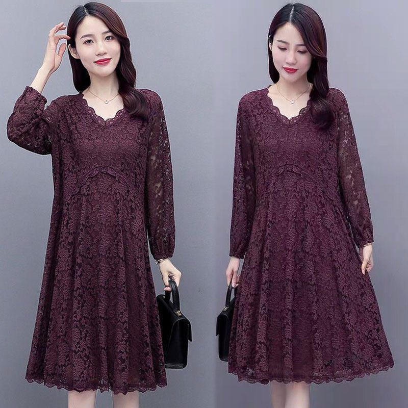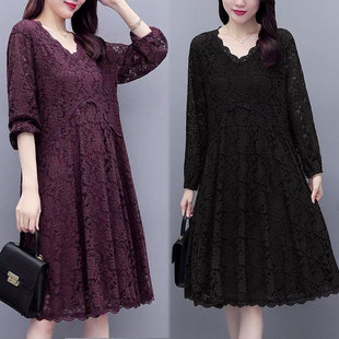打底裙宽松遮肚A字裙子 女胖mm中长款 春秋蕾丝连衣裙2025新款 大码