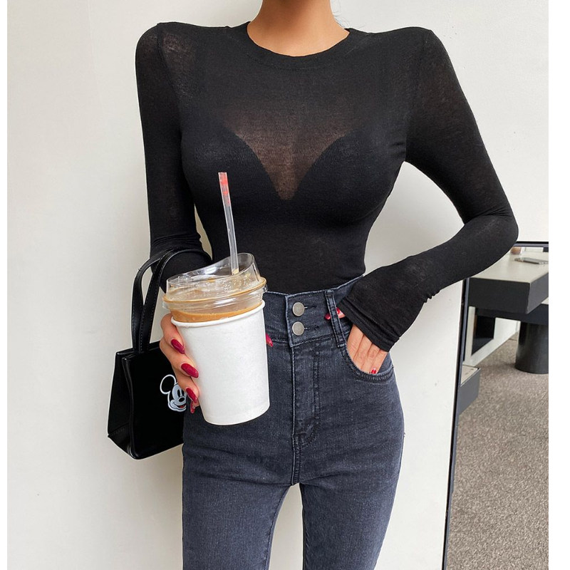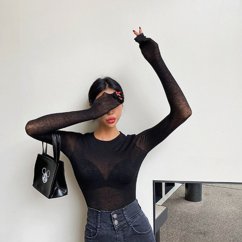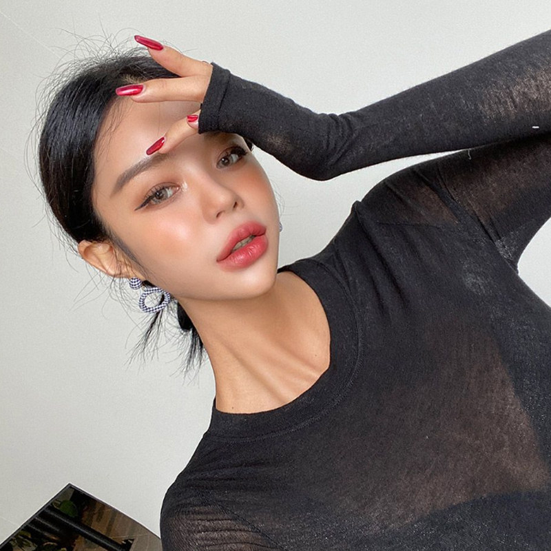 性感微透打底衫 韩国东大门网红女装 t恤女修身 长袖 薄 2025春秋新款