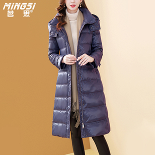 中长款 新款 休闲过膝御寒羽绒外套 连帽羽绒服女士2024冬季 茗思时尚