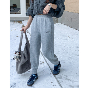 加绒运动卫裤 新款 女宽松空气棉哈伦裤 高弹大码 子 GLF69冬 萝卜裤 季