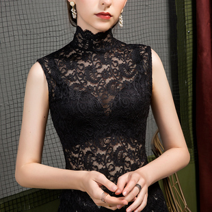 内搭立领网纱背心春秋新款 2020秋季 洋气无袖 女修身 高领蕾丝打底衫