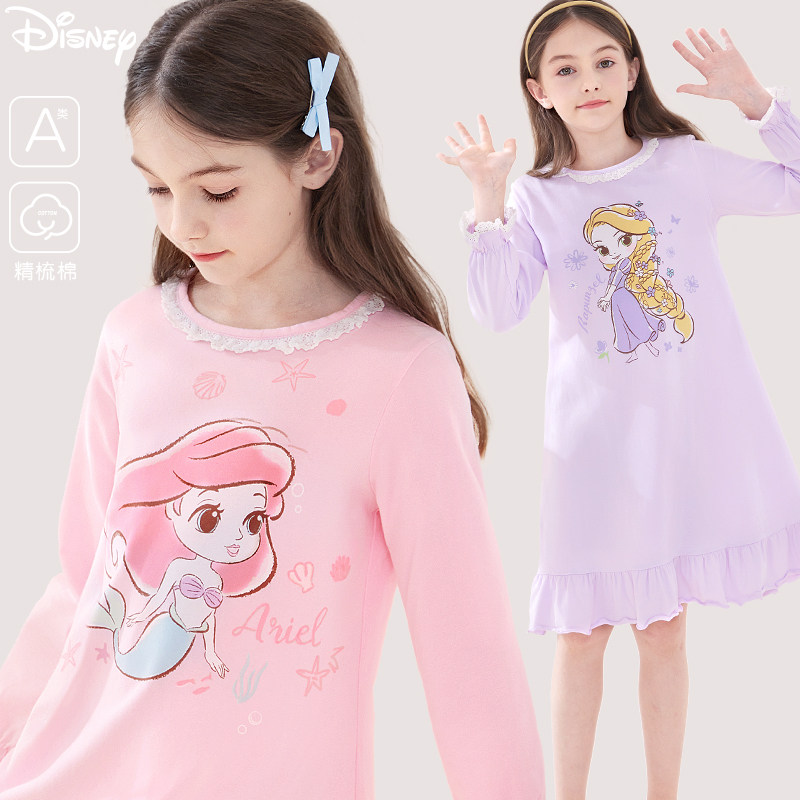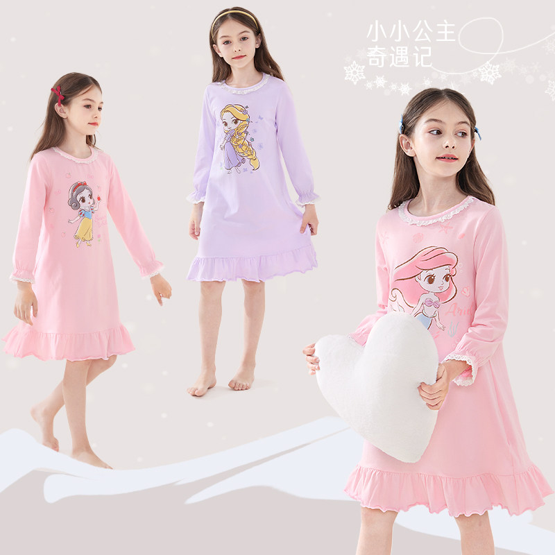 久岁伴儿童睡裙女童短袖 春夏莫代尔睡衣中大童家居服连衣裙 薄款