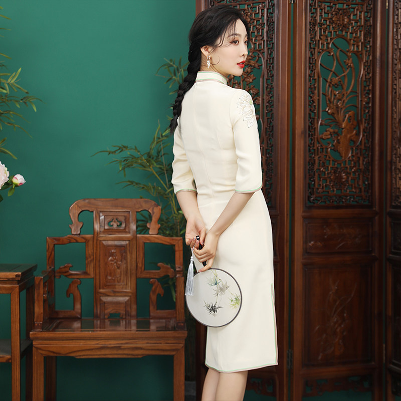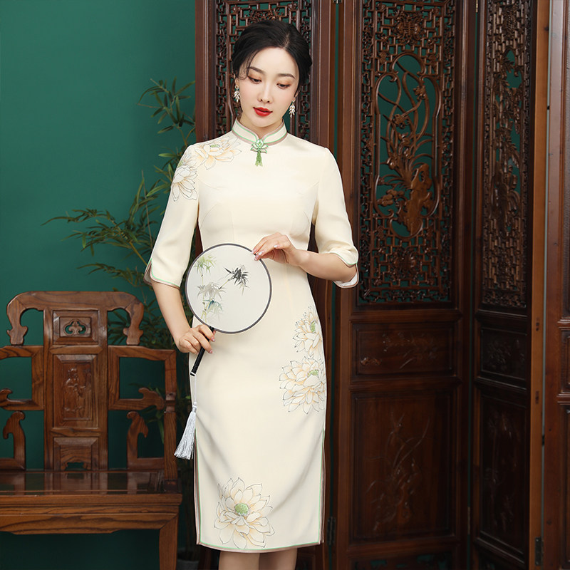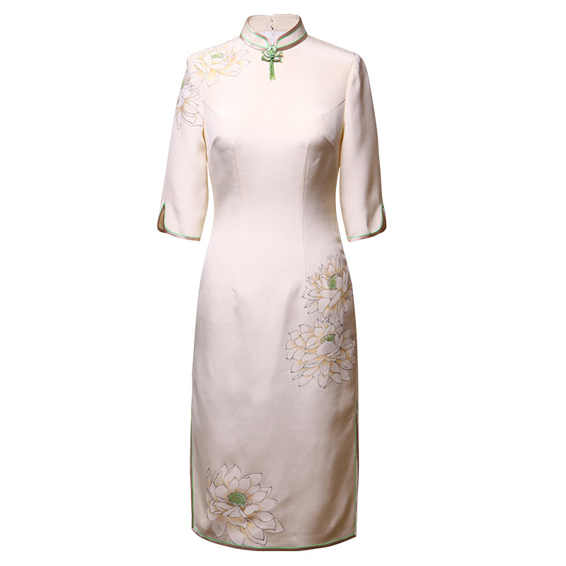 蝶恋 旗袍中国风改良旗袍真丝重绉手绘文艺崔万志旗袍裙女 花玥