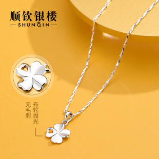 999纯银四叶草幸运项链女夏足银锁骨链小众款 送礼物 银吊坠简约款