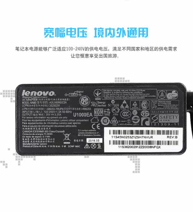 联想LENOVO笔记本XIAOXINI2000电源20V3.25A方口电脑适配器充电线