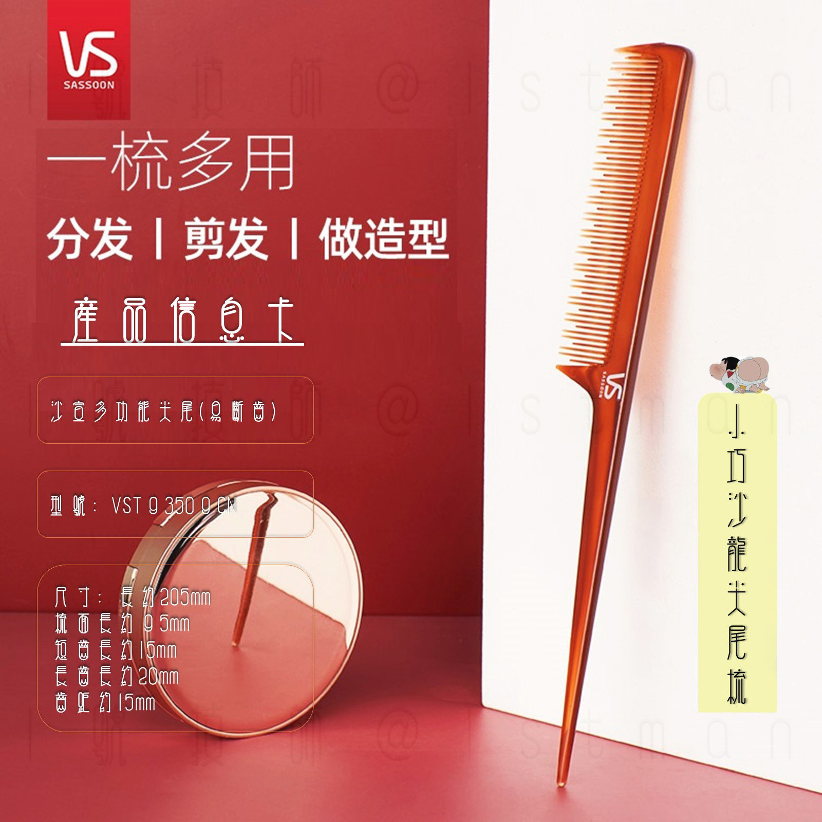 沙宣梳子尖尾梳美发师尖头分区梳盘发挑梳打毛造型梳