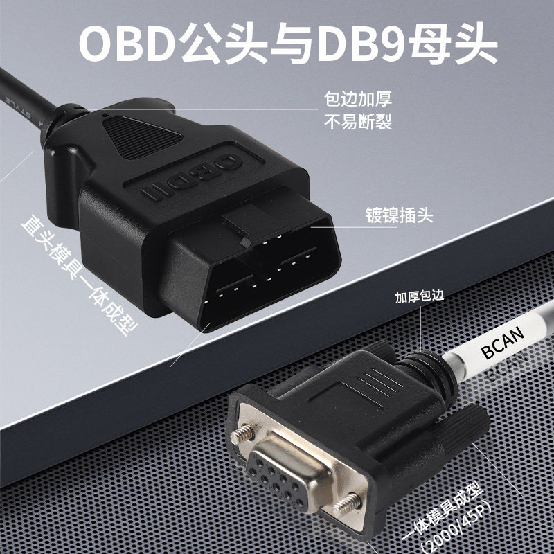 汽车OBD2公头转4个DB9PIN母头接口RS23 OBD网关连接线双绞信号好