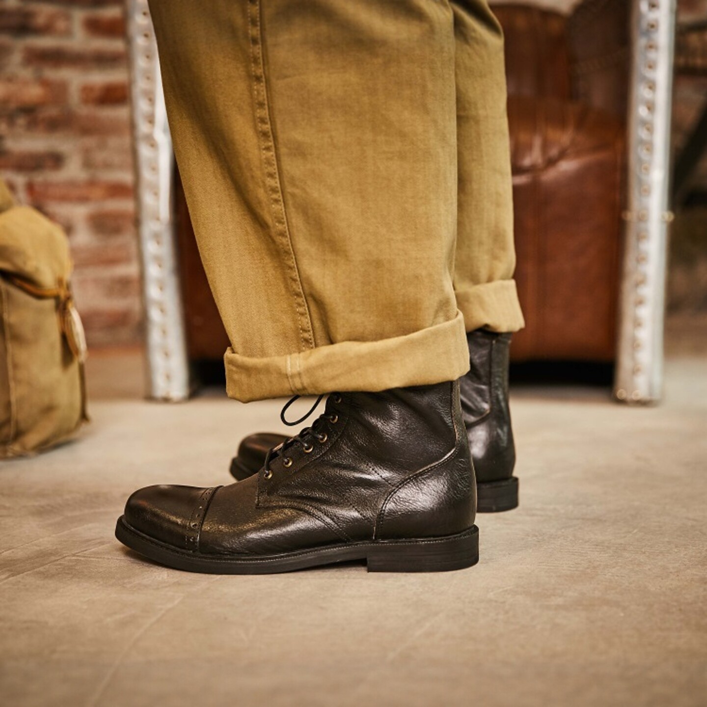 高帮真皮黑色伞兵靴男鞋 马丁机车短靴男款 复古英伦风圆头工装 美式