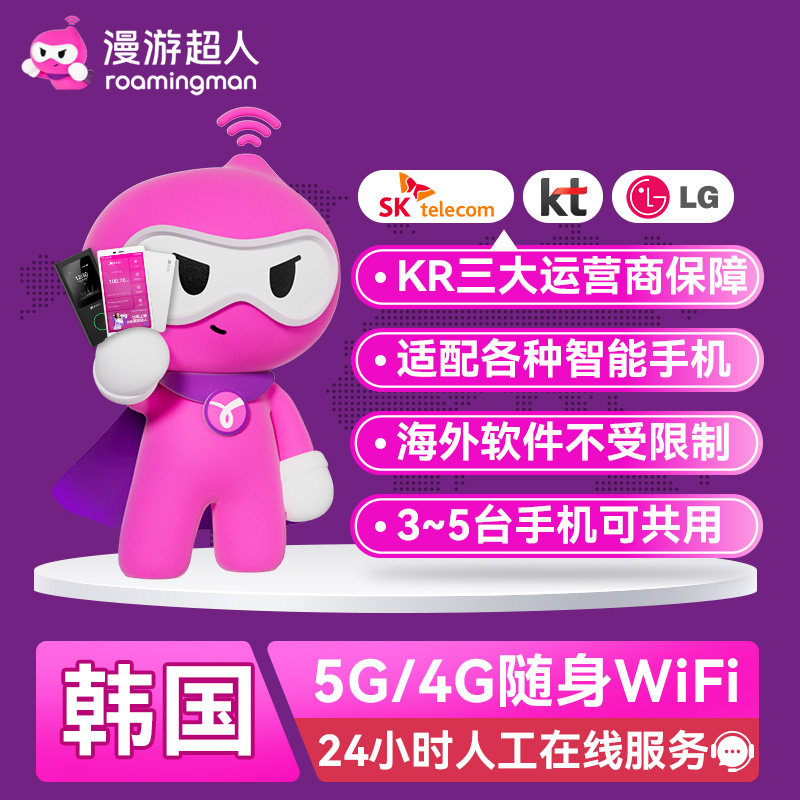 韩国随身WiFi租赁无限流量移动上网济州岛出国旅游 漫游超人5G